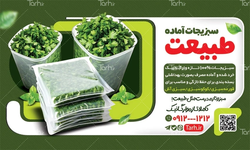 طرح قابل ویرایش بنر سبزیجات آماده با فرمت psd و قابل ویرایش در نرمافزار فتوشاپ بهصورت لایه باز توسط تیم طراحان طرح دات آی آر طراحی شده است. در طرح لایه باز بنر سبزیجات آماده از تصاویر و المانهای باکیفیت و متناسب با استاندارد چاپ استفادهشده، همچنین نکات مهم در طرح بنر مشاغل مانند رنگبندی، رعایت حاشیه، فاصلهها، سایز و نوع فونت مناسب طراحی پوستر مشاغل و ... رعایت گردیده است. طرح بنر سبزیجات آماده شامل عکس سبزیجات میباشد که المانهای استفادهشده در طرح لایه باز پوستر سبزی فروشی قابلیت ویرایش، جابهجایی و تغییر سایز را دارا بوده و شما میتوانید متناسب باسلیقه خودتان طرح بنر تبلیغاتی سبزیجات آماده را ویرایش نمایید، همچنین با تغییر تصاویر و متنها میتوانید طرح پوستر سبزی آماده را به طرح تابلوی شغل موردنظر خود تبدیل نمایید.