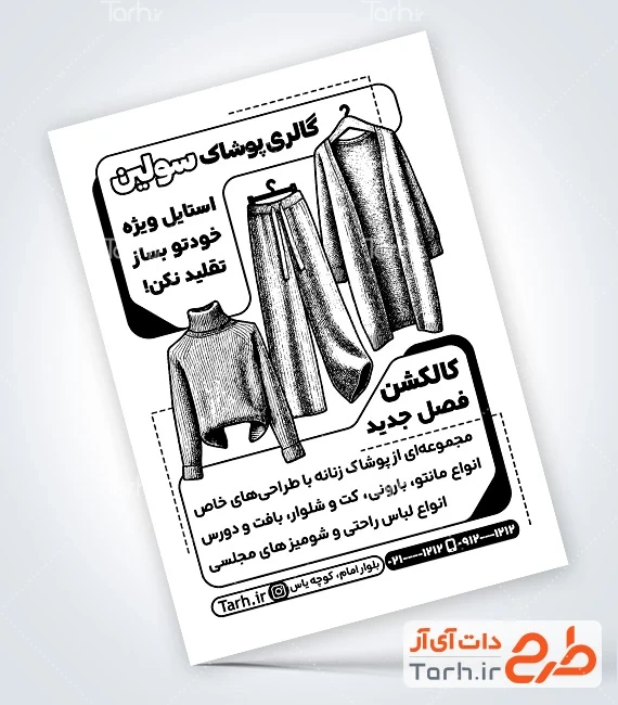 - دسته بندی : تراکت سیاه سفید مانتو و پوشاک بانوان
