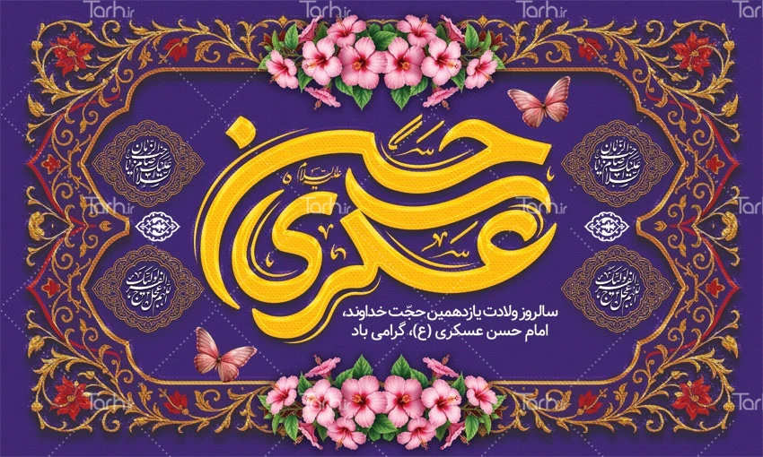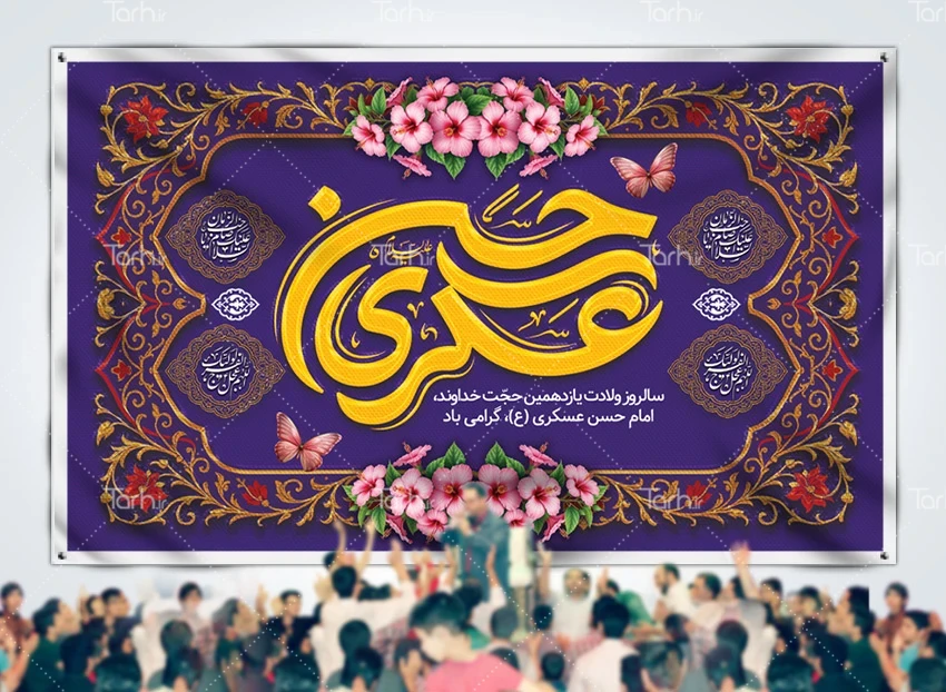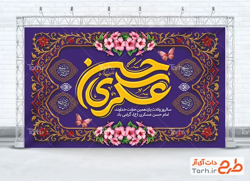 طرح لایه باز بنر جایگاه جشن ولادت امام حسن عسکری با فرمت psd و قابل ویرایش در نرم افزار فتوشاپ به صورت لایه باز توسط تیم طراحان طرح دات آی آر طراحی شده است. در طرح لایه باز ولادت امام حسن عسکری از تصاویر و المان های با کیفیت و متناسب با استاندارد چاپ استفاده گردیده است. طرح بنر ولادت امام حسن عسکری شامل خوشنویسی حسن عسکری، وکتور گل می باشد که المان های استفاده شده در طرح بنر پشت سن ولادت امام حسن عسکری قابلیت ویرایش، جابه جایی و تغییر سایز را دارا بوده و شما می توانید متناسب با سلیقه خودتان طرح دکور ولادت امام حسن عسکری لایه باز را ویرایش نمایید.