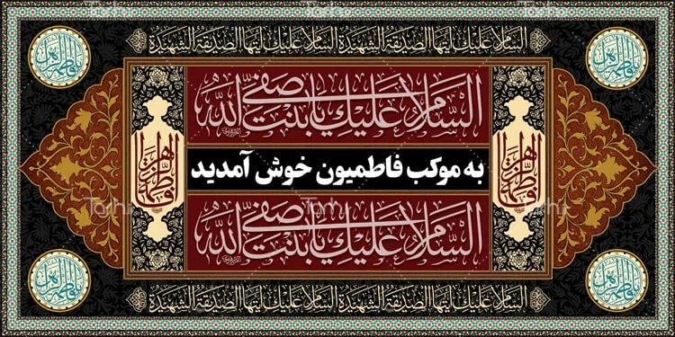 طرح لایه باز موکب شهادت حضرت زهرا با فرمت psd و قابل ویرایش در نرم افزار فتوشاپ به صورت لایه باز توسط تیم طراحان طرح دات آی آر طراحی شده است. در طرح موکب شهادت حضرت زهرا مدل طرح کتیبه فاطمیه از تصاویر و المان های با کیفیت و متناسب با استاندارد چاپ استفاده گردیده است. طرح بنر موکب فاطمیه شامل خوشنویسی السلام علیک یا بنت صفی الله، السلام علیک یا صدیقه الشهیده و کادر اسلیمی می باشد که المان های استفاده شده در طرح بنر موکب فاطمیه قابلیت ویرایش، جابه جایی و تغییر سایز را دارا بوده و شما می توانید متناسب با سلیقه خودتان طرح موکب شهادت حضرت فاطمه را ویرایش نمایید.