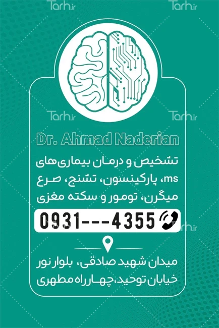 نمونه کارت ویزیت جراح مغز و اعصاب با فرمت psd و قابل ویرایش در نرمافزار فتوشاپ بهصورت لایه باز و پشت و رو (دو رو) توسط تیم طراحان طرح دات آی آر طراحی شده است. طرح کارت ویزیت متخصص مغز و اعصاب از تصاویر و المانهای باکیفیت و متناسب با استاندارد چاپ استفادهشده، همچنین نکات مهم در طرح کارت ویزیت مانند رنگبندی، رعایت حاشیه، فاصلهها، فضای کافی برای درج متن، سایز و نوع فونت مناسب طراحی کارت ویزیت و ... رعایت گردیده است. نمونه کارت ویزیت دکتر مغز و اعصاب شامل وکتور مغز میباشد که المانهای استفادهشده در کارت ویزیت متخصص و جراح مغز و اعصاب قابلیت ویرایش، جابهجایی و تغییر سایز را دارا بوده و شما میتوانید متناسب باسلیقه خودتان کارت ویزیت لایه باز دکتر مغز و اعصاب را ویرایش نمایید، همچنین با تغییر تصاویر و متنها میتوانید طرح کارت ویزیت دکتر مغز و اعصاب را به طرح کارت ویزیت کسب و کار مد نظر خود شخصی سازی نمایید.