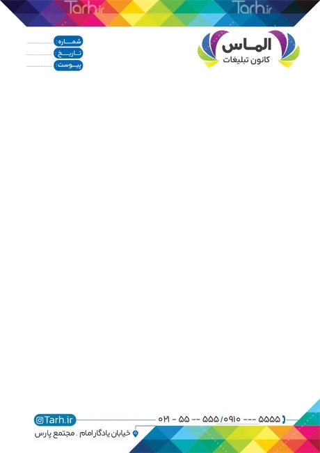 طرح خام سربرگ کانون آگهی و تبلیغات با فرمت psd و قابل ویرایش در نرمافزار فتوشاپ بهصورت لایه باز توسط تیم طراحان طرح دات آی آر طراحی شده است. در طرح لایه باز سربرگ شرکت تبلیغات از المانهای باکیفیت و متناسب با استاندارد چاپ استفادهشده، همچنین نکات مهم در طرح سربرگ خام کانون آگهی و تبلیغات مانند رنگبندی، رعایت حاشیه، فاصلهها، فضای کافی برای درج متن، سایز و نوع فونت مناسب طراحی سربرگ و ... رعایت گردیده است. سربرگ لایه باز کانون تبلیغات شامل محل درج مشخصات میباشد که المانهای استفادهشده در نمونه سربرگ شرکت تبلیغات قابلیت ویرایش، جابهجایی و تغییر سایز را دارا بوده و شما میتوانید متناسب باسلیقه خودتان طرح سربرگ کانون آگهی و تبلیغات را ویرایش نمایید، همچنین با تغییر لوگو و متنها میتوانید طرح سربرگ کانون تبلیغات را به طرح سربرگ کسب و کار مد نظر خود شخصی سازی نمایید. در اسناد و نامههای اداری و تجاری، سربرگ به عنوان وسیلهای برای نمایش اطلاعاتی مانند نام و لوگو یک شرکت یا سازمان، عنوان سند، تاریخ، شماره صفحه و اطلاعات تماس ( شماره تلفن، آدرس پستی، وبسایت و ایمیل) به کار میرود. این اطلاعات به دریافتکننده کمک میکند تا به راحتی با شرکت یا سازمان تماس بگیرد یا از منابع اطلاعاتی بیشتری بهرهبرداری کند.