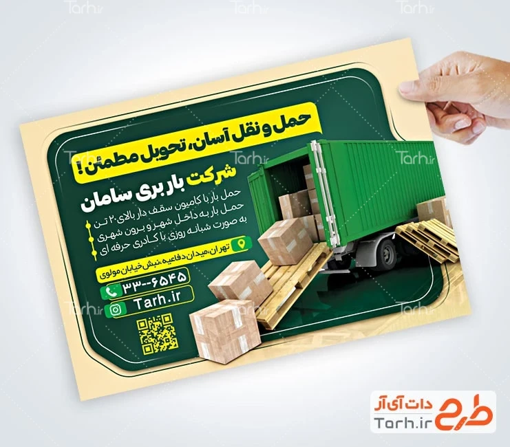 طرح تراکت آماده شرکت باربری با فرمت psd و قابل ویرایش در نرمافزار فتوشاپ بهصورت لایه باز توسط تیم طراحان طرح دات آی آر طراحی شده است. در نمونه تراکت باربری از تصاویر و المانهای باکیفیت و متناسب با استاندارد چاپ استفادهشده، همچنین نکات مهم در طرح تراکت باربری مانند رنگبندی، رعایت حاشیه، فاصلهها، فضای کافی برای درج متن، سایز و نوع فونت مناسب طراحی تراکت و ... رعایت گردیده است. طرح لایه باز تراکت حمل و نقل شامل عکس کامیون میباشد که المانهای استفادهشده در طرح تراکت حمل و نقل قابلیت ویرایش، جابهجایی و تغییر سایز را دارا بوده و شما میتوانید متناسب باسلیقه خودتان تراکت لایه باز باربری را ویرایش نمایید، همچنین با تغییر تصاویر و متنها میتوانید طرح تراکت خدمات حمل و نقل را به طرح تراکت کسب و کار مد نظر خود شخصی سازی نمایید.