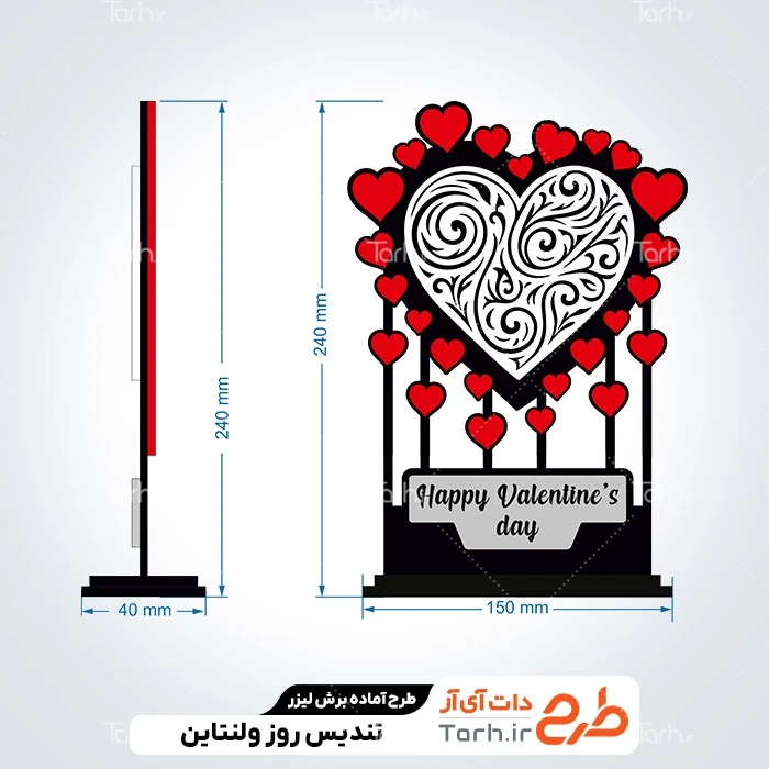 دانلود طرح لیزر تندیس ولنتاین با نرم افزار Corel Draw به صورت لایه باز و قابل ویرایش توسط تیم طراحان طرح دات آی آر طراحی شده است. در طرح آماده برش لیزری استند روز ولنتاین نکات مهم طراحی لیزر مانند رعایت ضخامت چوب، ابعاد استاندارد طرح و چیدمان درست برای کمترین پرتی رعایت گردیده است. طرح برش لیزری تندیس ولنتاین، آماده اجرا توسط دستگاه های برش، سی ان سی (CNC)، حکاکی لیزر و حکاکی روی چوب میباشد. شما میتوانید از طرح لیزر روز عشق جهت تولید انواع لیزر تندیس و استند ولنتاین به عنوان هدیه در مراسمات روز ولنتاین استفاده کنید.