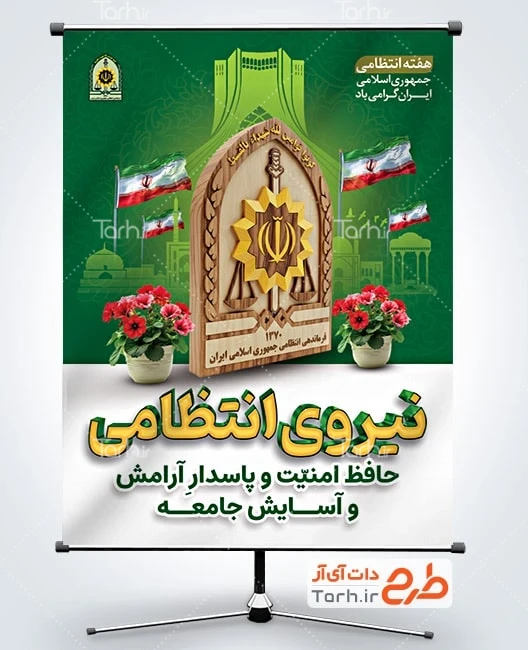 طرح پوستر تبریک هفته انتظامی با فرمت psd و قابل ویرایش در نرم افزار فتوشاپ به صورت لایه باز توسط تیم طراحان طرح دات آی آر طراحی شده است. در دانلود طرح بنر هفته انتظامی از تصاویر و المانهای با کیفیت و متناسب با استاندارد چاپ استفاده گردیده است. طرح لایه باز تبریک روز نیروی انتظامی شامل متن نیروی انتظامی حافظ امنیت و پاسدار آرامش و آسایش جامعه، عکس لوگو فرماندهی انتظامی، عکس پرچم ایران و وکتور گلدان گل می باشد. المانهای استفاده شده در طرح بنر روز نیروی انتظامی قابلیت ویرایش، جابه جایی و تغییر سایز را دارا بوده و شما می توانید متناسب با سلیقه خودتان بنر لایه باز هفته انتظامی را ویرایش نمایید.