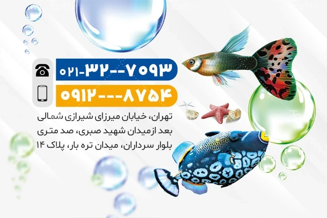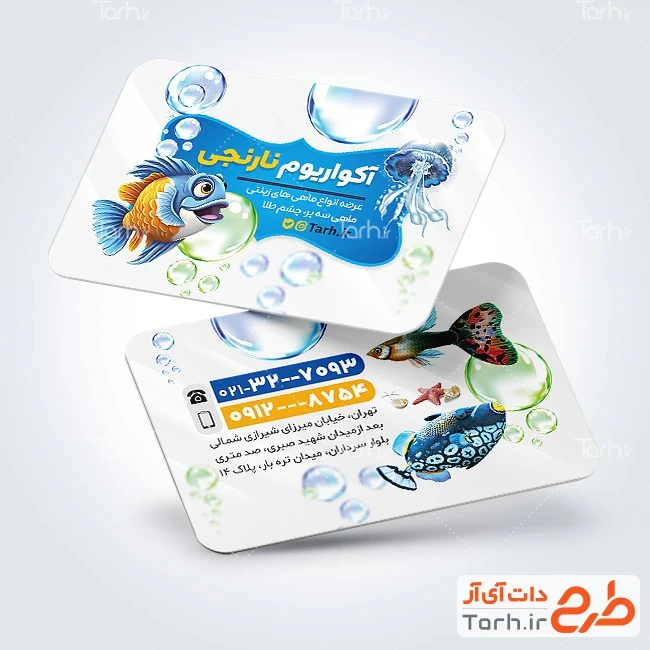 نمونه کارت ویزیت فروش آکواریوم با قابلیت ویرایش المان ها کد فایل 1573069