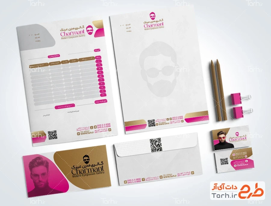 طرح ست اداری فروشگاه عینک با قابلیت ویرایش المان ها کد فایل 1590278
