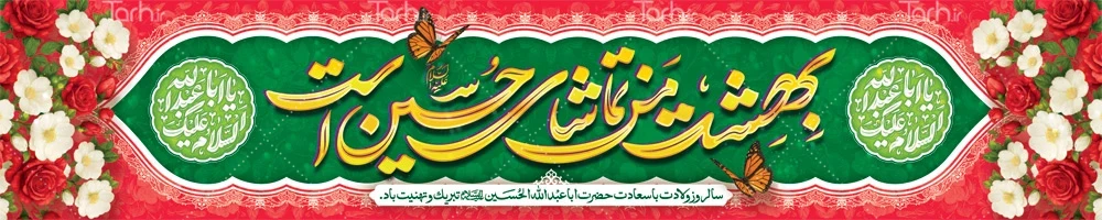 طرح لایه باز بیلبورد ولادت امام حسین با تایپوگرافی بهشت من تماشای حسین است کد فایل 1628503