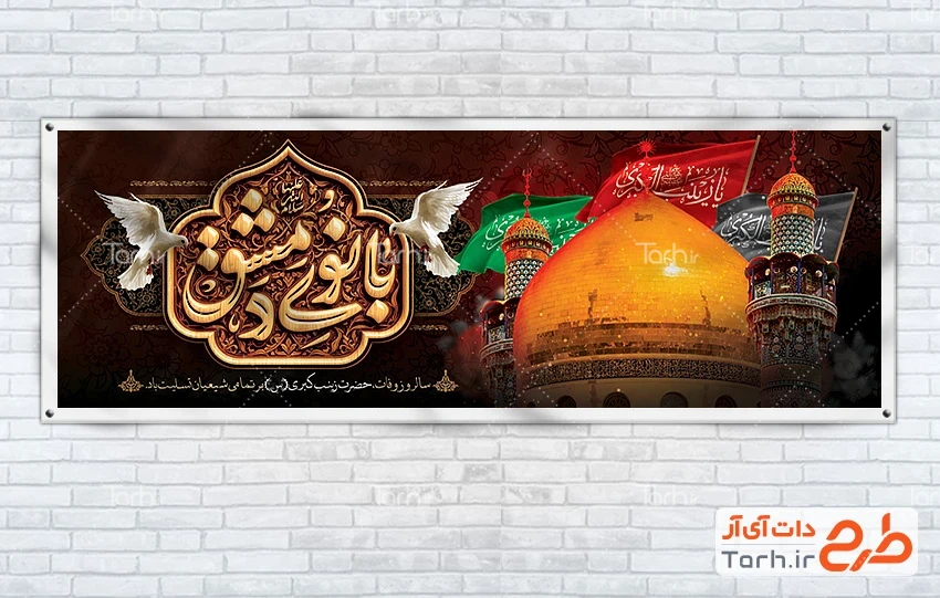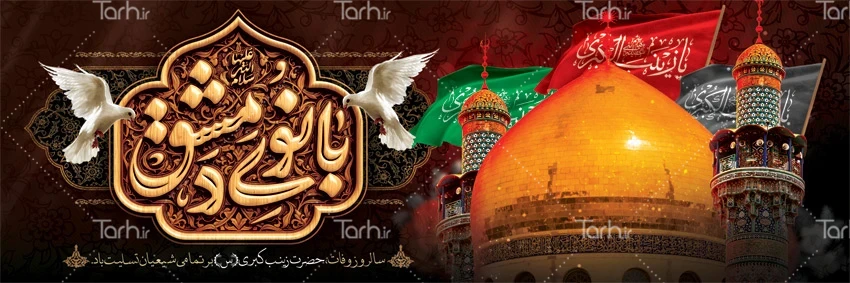 بنر پلاکارد وفات حضرت زینب با تایپوگرافی بانوی دمشق کد فایل 1643982