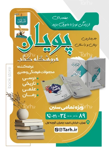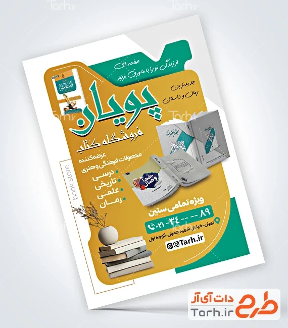 نمونه تراکت تبلیغاتی کتاب فروشی دارای عکس کتاب کد فایل 1654920