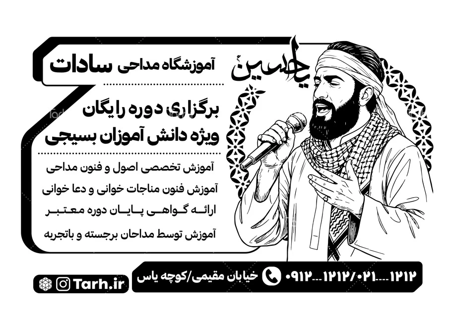 طرح لایه باز تراکت سیاه سفید آموزش مداحی با قابلیت ویرایش المان ها کد فایل 1670549