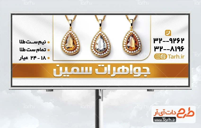 طرح بیلبورد جواهری با فرمت psd و قابل ویرایش در نرمافزار فتوشاپ بهصورت لایه باز توسط تیم طراحان طرح دات آی آر طراحی شده است. در طرح لایه باز بنر طلا فروشی از تصاویر و المانهای باکیفیت و متناسب با استاندارد چاپ استفادهشده، همچنین نکات مهم در طرح بنر مغازه مانند رنگبندی، رعایت حاشیه، فاصلهها، سایز و نوع فونت مناسب طراحی تابلو مشاغل و ... رعایت گردیده است. طرح بنر طلا فروشی شامل عکس دستبند و انگشتر میباشد که المانهای استفادهشده در طرح تابلو جواهری قابلیت ویرایش، جابهجایی و تغییر سایز را دارا بوده و شما میتوانید متناسب باسلیقه خودتان طرح بنر تبلیغاتی زرگری را ویرایش نمایید، همچنین با تغییر تصاویر و متنها میتوانید طرح تابلو طلا و جواهری را به طرح تابلوی شغل موردنظر خود تبدیل نمایید.