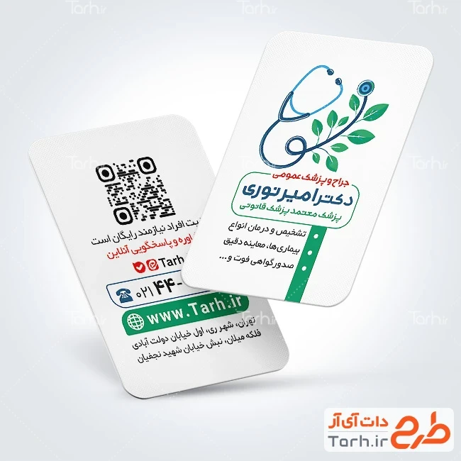 طرح آماده کارت ویزیت پزشک عمومی با فرمت psd و قابل ویرایش در نرمافزار فتوشاپ بهصورت لایه باز و پشت و رو (دو رو) توسط تیم طراحان طرح دات آی آر طراحی شده است. طرح کارت ویزیت دکتر عمومی از تصاویر و المانهای باکیفیت و متناسب با استاندارد چاپ استفادهشده، همچنین نکات مهم در طرح کارت ویزیت مانند رنگبندی، رعایت حاشیه، فاصلهها، فضای کافی برای درج متن، سایز و نوع فونت مناسب طراحی کارت ویزیت و ... رعایت گردیده است. نمونه کارت ویزیت پزشک عمومی شامل عکس گوشی پزشکی میباشد که المانهای استفادهشده در طرح لایه باز کارت ویزیت دکتر عمومی قابلیت ویرایش، جابهجایی و تغییر سایز را دارا بوده و شما میتوانید متناسب باسلیقه خودتان کارت ویزیت لایه باز متخصص را ویرایش نمایید، همچنین با تغییر تصاویر و متنها میتوانید طرح کارت ویزیت پزشک عمومی را به طرح کارت ویزیت کسب و کار مد نظر خود شخصی سازی نمایید.
