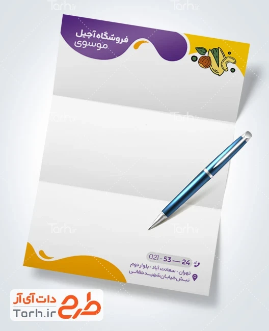 طرح سربرگ فروشگاه آجیل و خشکبار با فرمت psd و قابل ویرایش در نرمافزار فتوشاپ بهصورت لایه باز توسط تیم طراحان طرح دات آی آر طراحی شده است. در طرح لایه باز سربرگ آجیل فروشی از المانهای باکیفیت و متناسب با استاندارد چاپ استفادهشده، همچنین نکات مهم در طرح سربرگ آجیل فروشی مانند رنگبندی، رعایت حاشیه، فاصلهها، فضای کافی برای درج متن، سایز و نوع فونت مناسب طراحی سربرگ و ... رعایت گردیده است. سربرگ لایه باز آجیل و خشکبار شامل وکتور پسته و محل جایگذاری مشخصات میباشد که المانهای استفادهشده در نمونه سربرگ آجیل سرا قابلیت ویرایش، جابهجایی و تغییر سایز را دارا بوده و شما میتوانید متناسب باسلیقه خودتان طرح سربرگ آجیل و خشکبار را ویرایش نمایید، همچنین با تغییر لوگو و متنها میتوانید طرح لایه باز سربرگ آجیل و خشکبار فروشی را به طرح سربرگ کسب و کار مد نظر خود شخصی سازی نمایید. در اسناد و نامههای اداری و تجاری، سربرگ به عنوان وسیلهای برای نمایش اطلاعاتی مانند نام و لوگو یک شرکت یا سازمان، عنوان سند، تاریخ، شماره صفحه و اطلاعات تماس ( شماره تلفن، آدرس پستی، وبسایت و ایمیل) به کار میرود. این اطلاعات به دریافتکننده کمک میکند تا به راحتی با شرکت یا سازمان تماس بگیرد یا از منابع اطلاعاتی بیشتری بهرهبرداری کند.
