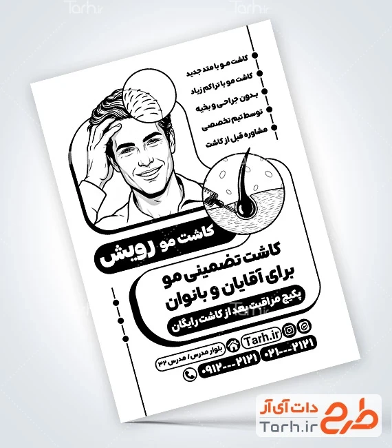 ابعاد قابل چاپ طرح تراکت سیاه سفید کاشت مو و کاربرد آن