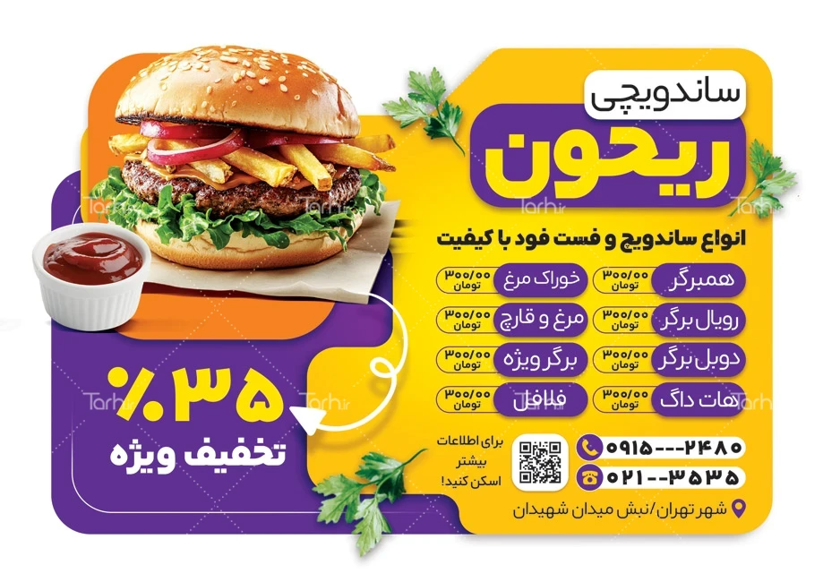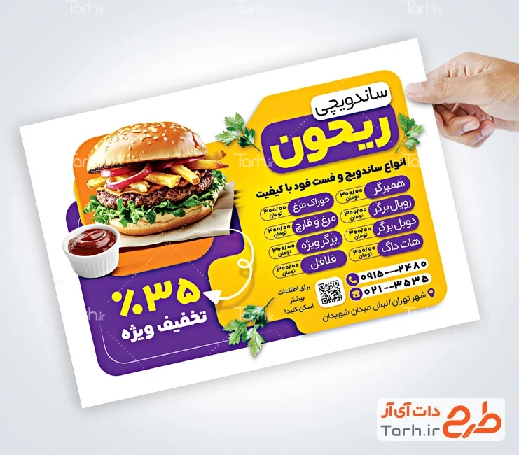 - دسته بندی : تراکت ساندویچ، فست فود و پیتزا