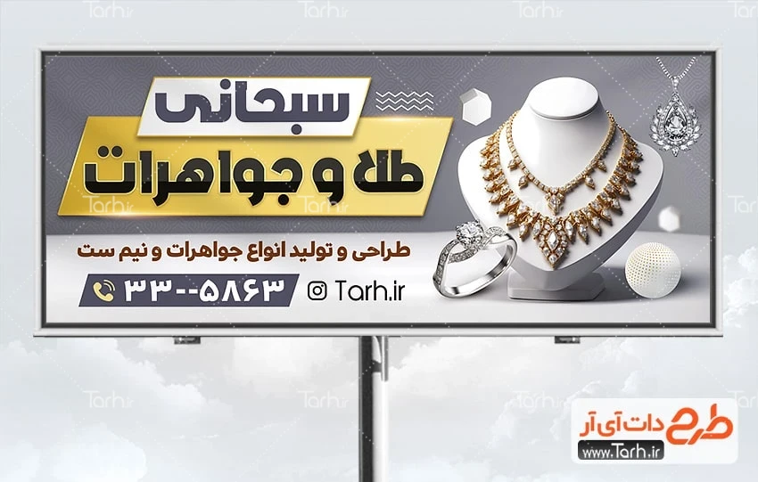 بنر خام طلا فروشی با فرمت psd و قابل ویرایش در نرمافزار فتوشاپ بهصورت لایه باز توسط تیم طراحان طرح دات آی آر طراحی شده است. در طرح لایه باز بنر جواهری از تصاویر و المانهای باکیفیت و متناسب با استاندارد چاپ استفادهشده، همچنین نکات مهم در بنر لایه باز مغازه مانند رنگبندی، رعایت حاشیه، فاصلهها، سایز و نوع فونت مناسب طراحی تابلو مشاغل و ... رعایت گردیده است. طرح بنر طلا فروشی شامل عکس گردنبند میباشد که المانهای استفادهشده در طرح تابلو جواهری قابلیت ویرایش، جابهجایی و تغییر سایز را دارا بوده و شما میتوانید متناسب باسلیقه خودتان طرح بنر تبلیغاتی زرگری را ویرایش نمایید، همچنین با تغییر تصاویر و متنها میتوانید طرح تابلو طلا و جواهری را به طرح تابلوی شغل موردنظر خود تبدیل نمایید.