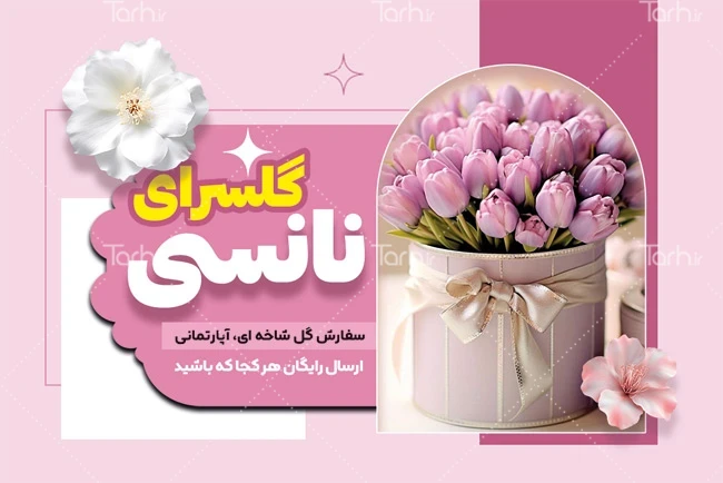 طرح آماده کارت ویزیت گل فروشی شامل عکس باکس گل کد فایل 1732549