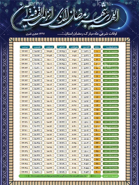 ابعاد قابل چاپ طرح اوقات شرعی ماه رمضان و کاربرد آن