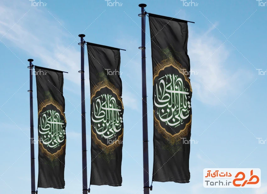 طرح پرچم عمودی شهادت امام علی با فرمت psd و قابل ویرایش در نرم افزار فتوشاپ به صورت لایه باز توسط تیم طراحان طرح دات آی آر طراحی شده است. در طرح استند و لمپوست شهادت امام علی از تصاویر و المان های با کیفیت و متناسب با استاندارد چاپ استفاده گردیده است. طرح لایه باز پرچم عمودی شهادت امام علی شامل تایپوگرافی یا علی بن ابی طالب می باشد که المان های استفاده شده در طرح پرچم پل شهادت امام علی قابلیت ویرایش، جابه جایی و تغییر سایز را دارا بوده و شما می توانید متناسب با سلیقه خودتان طرح بنر شهری شهادت امام علی را ویرایش نمایید.