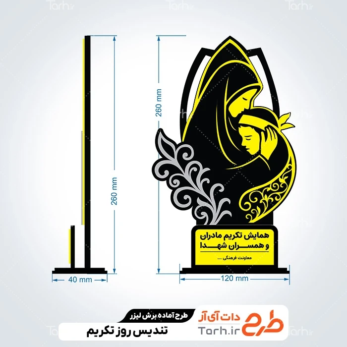 طرح آماده برش لیزری تندیس تکریم مادران شهید کد فایل 1754392