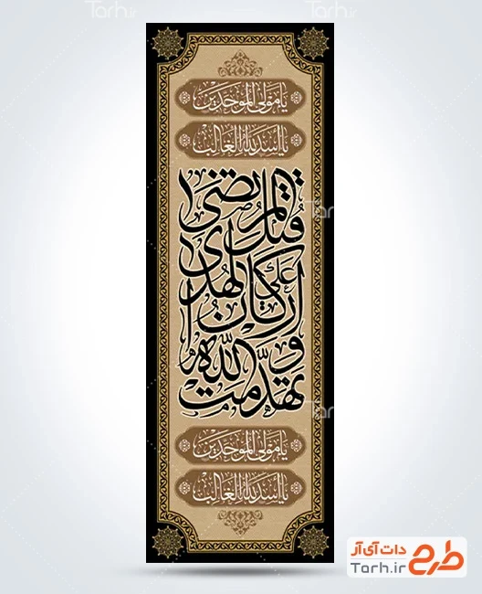 طرح کتیبه ستونی شهادت امام علی با فرمت psd و قابل ویرایش در نرم افزار فتوشاپ به صورت لایه باز توسط تیم طراحان طرح دات آی آر طراحی شده است. در طرح کتیبه شهادت امیرالمومنین از تصاویر و المان های با کیفیت و متناسب با استاندارد چاپ استفاده گردیده است. طرح کتیبه شهادت امام علی شامل خوشنویسی تهدمت والله ارکان الهدی قتل علی المرتضی و طرح اسلیمی می باشد که المان های استفاده شده در طرح کتیبه عمودی شهادت امام علی قابلیت ویرایش، جابه جایی و تغییر سایز را دارا بوده و شما می توانید متناسب با سلیقه خودتان بنر شهادت حضرت علی لایه باز را ویرایش نمایید.