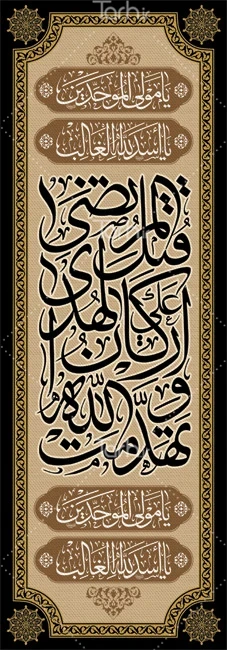 طرح کتیبه ستونی شهادت امام علی با خوشنویسی تهدمت والله ارکان الهدی قتل علی المرتضی کد فایل 1762904