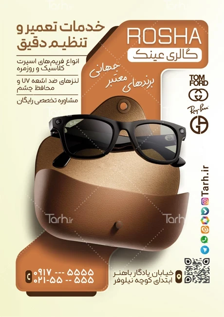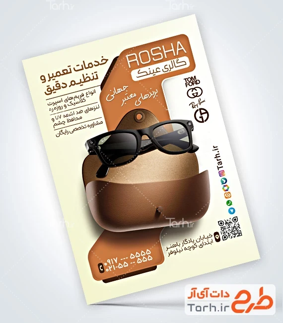 طرح لایه باز تراکت عینک فروشی با قابلیت ویرایش المان ها کد فایل 1786543