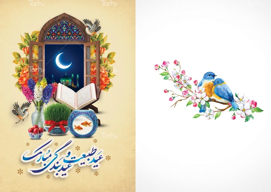 نمونه کارت پستال عید نوروز و عید فطر شامل خوشنویسی عید طبیعت و عید بندگی مبارک کد فایل 1793580