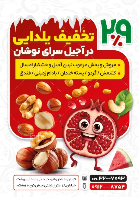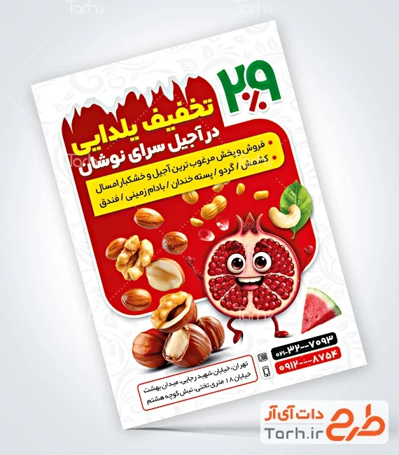 ابعاد قابل چاپ طرح لایه باز تراکت آجیل فروشی ویژه شب یلدا و کاربرد آن