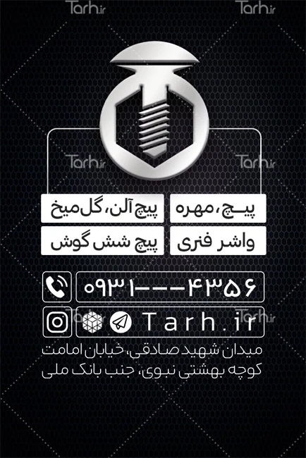 - دسته بندی : کارت ویزیت فروشگاه پیچ و مهره