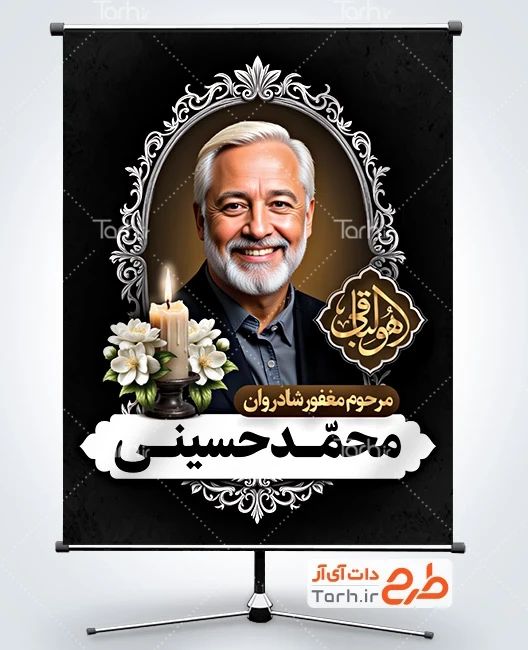 طرح آماده بنر عکس مرحوم با فرمت psd و قابل ویرایش در نرم افزار فتوشاپ به صورت لایه باز توسط تیم طراحان طرح دات آی آر طراحی شده است. در طرح لایه باز عکس مرحوم از تصاویر و المان های با کیفیت و متناسب با استاندارد چاپ استفاده گردیده است. طرح بنر عکس مرحوم شامل محل جایگذاری عکس مرحوم، تایپوگرافی هوالباقی، عکس گل و شمع می باشد که المان های استفاده شده در بنر تصویر مرحوم قابلیت ویرایش، جابه جایی و تغییر سایز را دارا بوده و شما می توانید متناسب با سلیقه خودتان طرح لایه باز بنر ترحیم و تصویر مرحوم را ویرایش نمایید.
