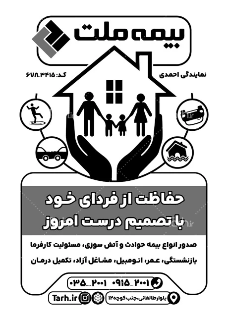 نمونه تراکت سیاه و سفید دفتر بیمه ملت به صورت لایه باز کد فایل 1798562