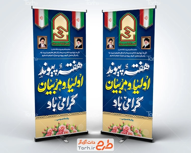 طرح استند هفته پیوند اولیا و مربیان با فرمت psd و قابل ویرایش در نرم افزار فتوشاپ به صورت لایه باز توسط تیم طراحان طرح دات آی آر طراحی شده است. در طرح لایه باز استند هفته پیوند اولیا مربیان از تصاویر و المان های با کیفیت و متناسب با استاندارد چاپ استفاده گردیده است. طرح بنر ایستاده هفته اولیا مربیان شامل خوشنویسی هفته پیوند اولیا و مربیان گرامی باد، وکتور گل، پرچم ایران، عکس رهبری و امام خمینی می باشد که المان های استفاده شده در استند خام هفته اولیا و مربیان قابلیت ویرایش، جابه جایی و تغییر سایز را دارا بوده و شما می توانید متناسب با سلیقه خودتان طرح بنر استندی هفته اولیا و مربیان را ویرایش نمایید.