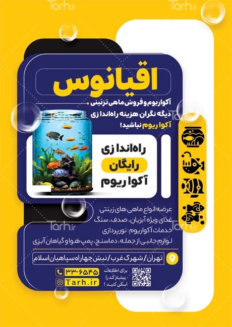 طرح آماده تراکت آکواریوم با تم زرد کد فایل 1843527