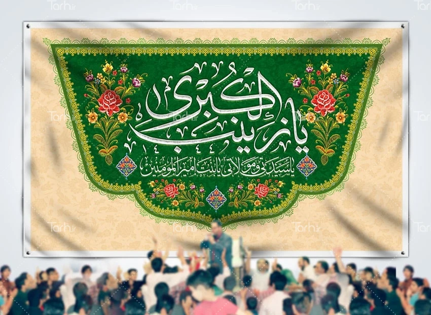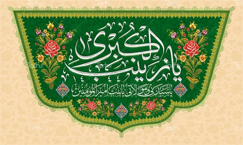 طرح کتیبه پشت منبر ولادت حضرت زینب با فرمت psd و قابل ویرایش در نرم افزار فتوشاپ به صورت لایه باز توسط تیم طراحان طرح دات آی آر طراحی شده است. در طرح لایه باز بنر ولادت حضرت زینب از تصاویر و المان های با کیفیت و متناسب با استاندارد چاپ استفاده گردیده است. طرح بنر پشت منبری ولادت حضرت زینب شامل تایپوگرافی یا زینب الکبری، یا سیدتی و مولاتی یا بنت امیرالمومنین می باشد که المان های استفاده شده در طرح بنر پشت مداح ولادت حضرت زینب قابلیت ویرایش، جابه جایی و تغییر سایز را دارا بوده و شما می توانید متناسب با سلیقه خودتان طرح دکور میلاد حضرت زینب لایه باز را ویرایش نمایید.