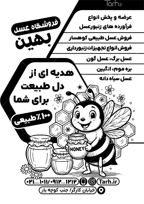 - دسته بندی : تراکت سیاه سفید فروشگاه عسل