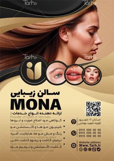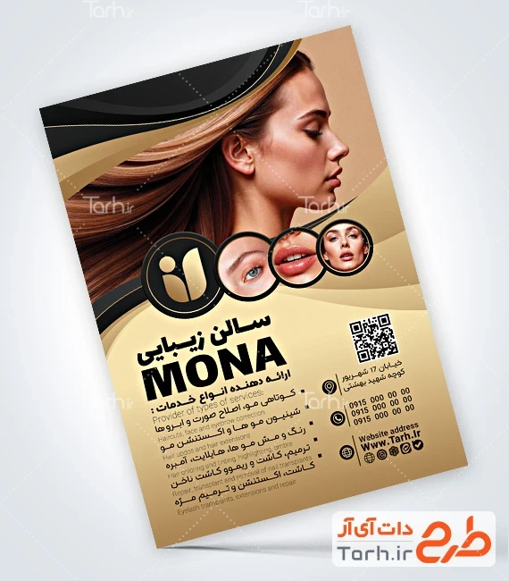 طرح psd تراکت آرایشگاه زنانه با رنگ بندی طلایی مشکی کد فایل 1906845