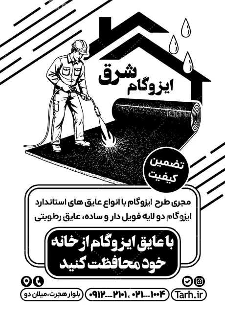 ابعاد تراکت تبلیغاتی سیاه و سفید ایزوگام در جدول ویژگیهای فایل درجشده و با توجه به لایه باز بودن و کیفیت بالای طرح تراکت ریسو خدمات نصب ایزوگام، قابلیت ویرایش و تبدیل به سایز دلخواه، همچنین چاپ روی متریالهای مختلف مانند انواع کاغذ، گلاسه، کاغذ الوان و ... را دارا میباشد. همچنین میتوان طرح سیاه سفید ایزوگام را در زمینه های چاپ سیلک ، نایلون، ساک دستی، پاکت دستی و کیسه نیز استفاده کرد. تراکت های سیاه سفید یا ریسو یک ابزار تبلیغاتی بسیار موثر محسوب می شوند و به دلیل هزینه کم و تأثیر بالا، در بسیاری از کسب و کارها به عنوان روشی اقتصادی و موثر برای انتقال اطلاعات به مخاطبان برای تبلیغات و رویدادهای مختلف استفاده میشوند.