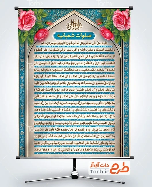 طرح لایه باز پوستر صلوات شعبانیه شامل متن و ترجمه صلوات شعبانیه کد فایل 1932506