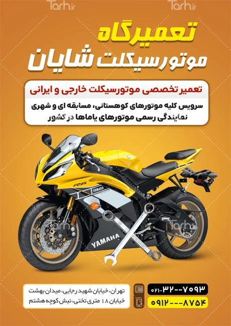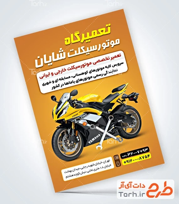 طرح لایه باز تراکت تعمیرگاه موتورسیکلت با قابلیت ویرایش المان ها کد فایل 1957834