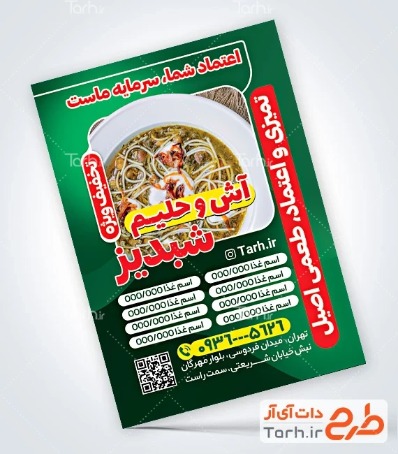 ابعاد قابل چاپ طرح لایه باز تراکت آش و حلیم و کاربرد آن
