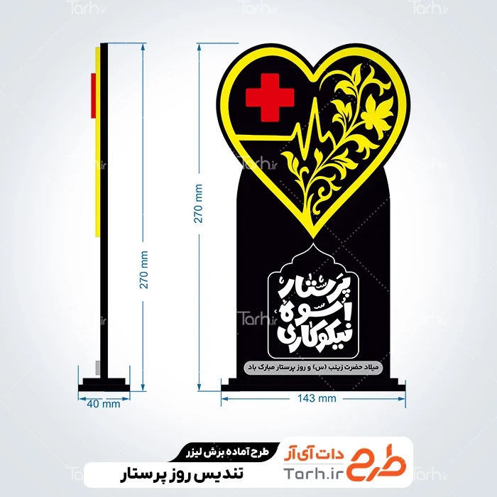 فایل لیزر تندیس روز پرستار با نرم افزار Corel Draw به صورت لایه باز و قابل ویرایش توسط تیم طراحان طرح دات آی آر طراحی شده است. در طرح آماده برش لیزری استند روز پرستار نکات مهم طراحی لیزر مانند رعایت ضخامت چوب، ابعاد استاندارد طرح و چیدمان درست برای کمترین پرتی رعایت گردیده است. طرح برش لیزری تندیس روز پرستار و میلاد حضرت زینب، آماده اجرا توسط دستگاه های برش، سی ان سی (CNC)، حکاکی لیزر و حکاکی روی چوب میباشد. شما میتوانید از طرح لیزر تندیس پرستار جهت تولید انواع تندیس و استند روز پرستار به عنوان هدیه در مراسمات روز پرستار و ولادت حضرت زینب استفاده کنید.
