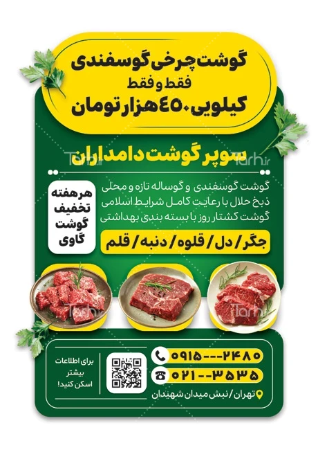 فایل لایه باز تراکت قصابی با تم سبز کد فایل 1970645