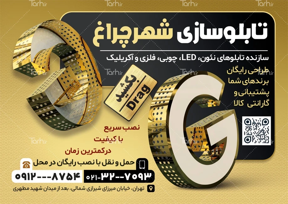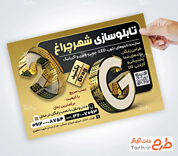 طرح تراکت خام تابلو سازی دارای رنگبندی مشکی طلایی کد فایل 2031467
