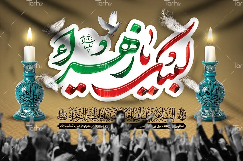 طرح لایه باز دکور ایام فاطمیه با تایپوگرافی لبیک یا زهرا کد فایل 2035947