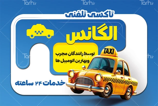 طرح لایه باز کارت ویزیت تاکسی با وکتور خودرو تاکسی تلفنی کد فایل 2067398