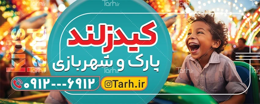 طرح قابل ویرایش تابلو پارک شامل عکس کودک در شهربازی کد فایل 2146059