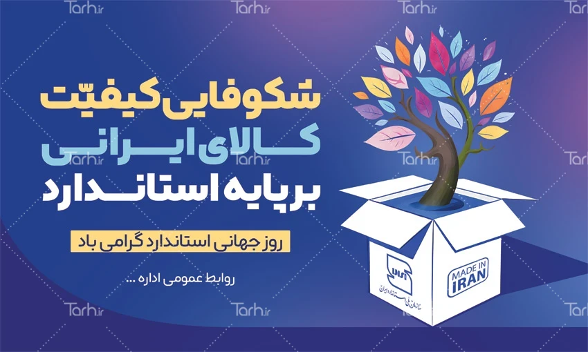 طرح لایه باز بنر روز استاندارد با فرمت psd و قابل ویرایش در نرم افزار فتوشاپ به صورت لایه باز توسط تیم طراحان طرح دات آی آر طراحی شده است. در بنر خام تبریک روز استاندارد از تصاویر و المان های با کیفیت و متناسب با استاندارد چاپ استفاده گردیده است. پوستر روز جهانی استاندارد شامل وکتور درخت و جعبه می باشد که المان های استفاده شده در بنر لایه باز روز استاندارد قابلیت ویرایش، جابه جایی و تغییر سایز را دارا بوده و شما می توانید متناسب با سلیقه خودتان طرح روز جهانی استاندارد را ویرایش نمایید.