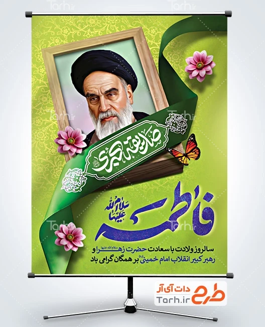ابعاد قابل چاپ طرح لایه باز بنر ولادت حضرت فاطمه و امام خمینی و کاربرد آن